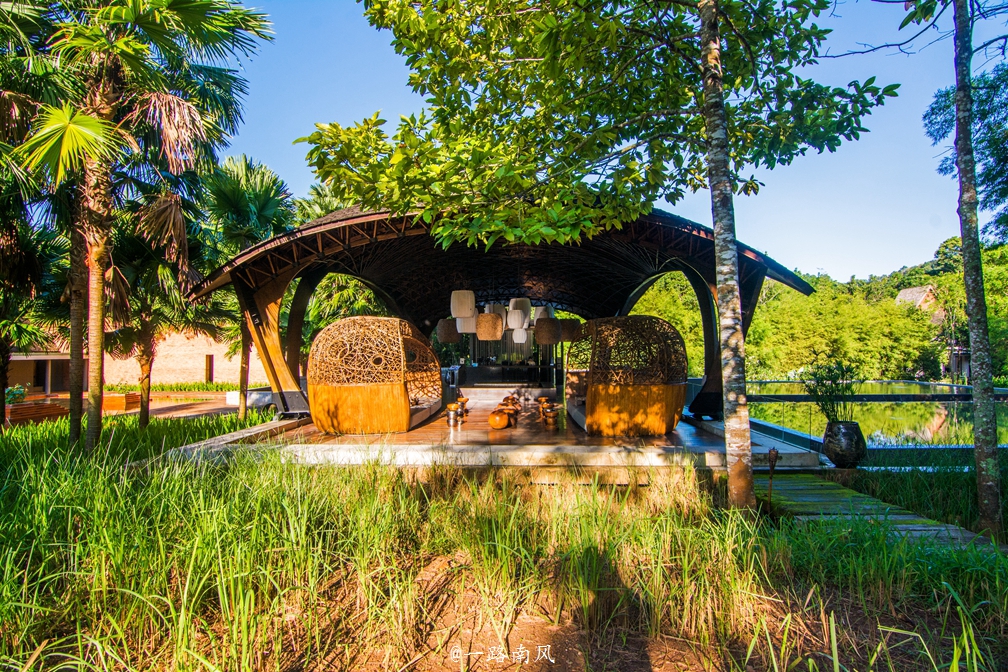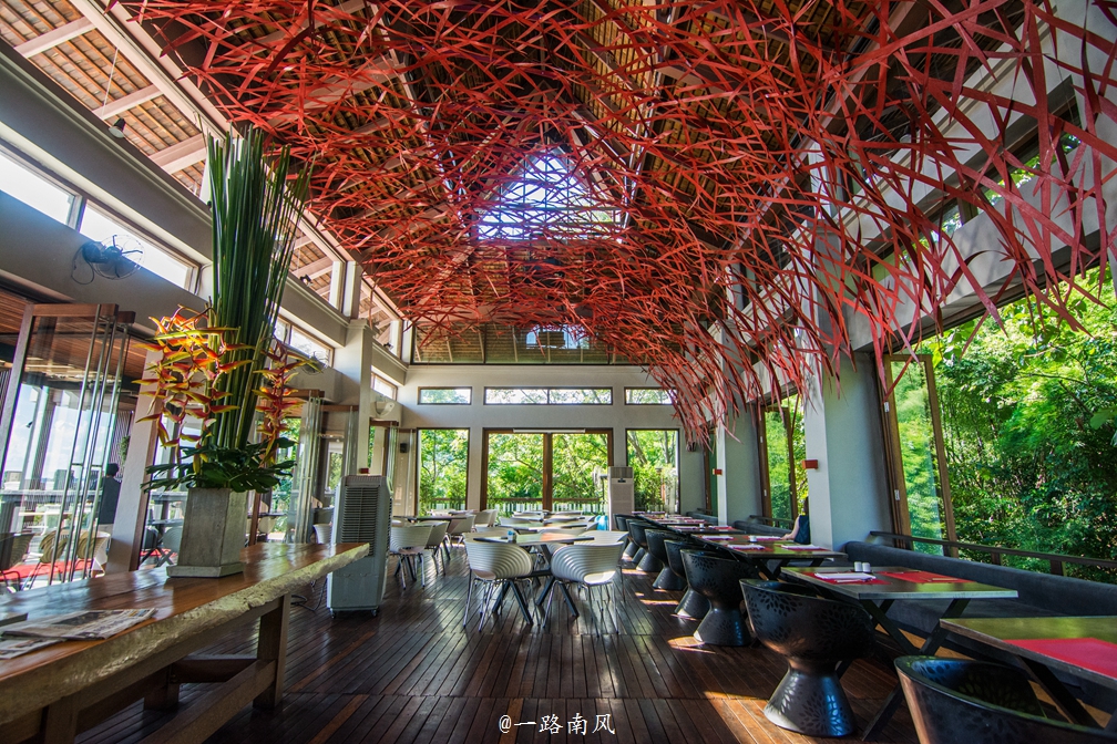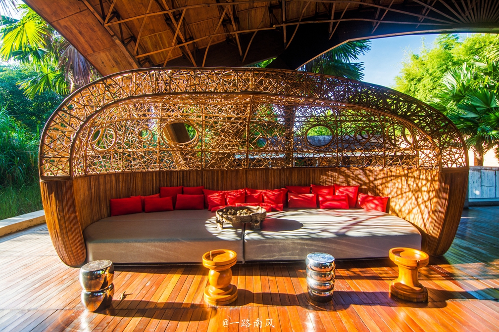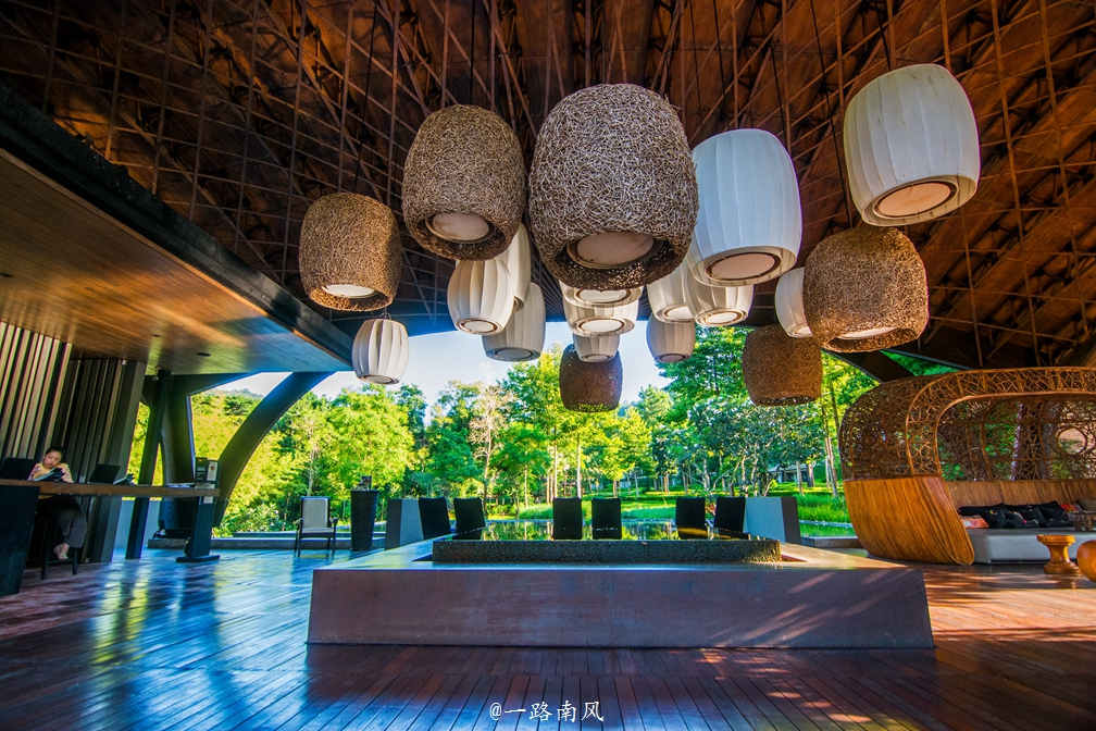 度假村的大堂为三面开放式设计。整座大堂就像一个大鸟巢,每一个细节都充满艺术气息,让人产生拍照的冲动。