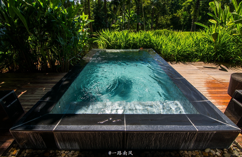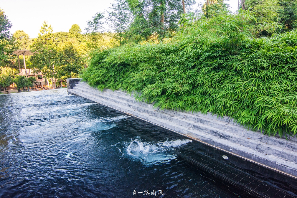 客房前茶园旁是一个大按摩池,启动开关,按摩池边沿的泉眼便会喷出泉水,在按摩池里,享受泉水对肌肤的细心关怀,既惬意又养生。