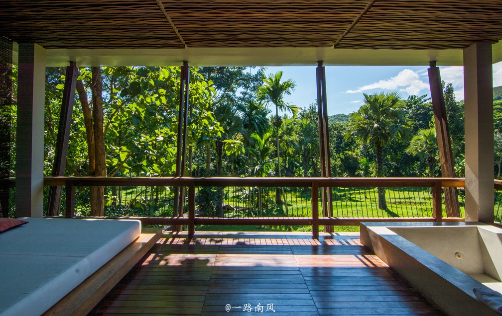 度假村分成两个区域,其中一个区域诠释了泰国北部的文化传统风格,另外一个区域则完全体现了瓦兰达现代游廊风格。