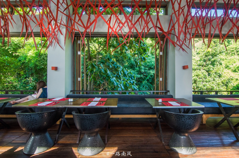 入住度假村的旅客都可以到THE HIGHER ROOM餐厅享用早餐,餐厅在其他时间也提供欧洲风味美食和从旧到新的一系列的葡萄酒选择。旅客可以自由选择就餐位置,如在宽敞现代化并配置空调的室内就餐区就餐,也可以在室外的露天座位就餐。个人比较喜欢室内座位,可以欣赏到无边际泳池和整个山林的景色。