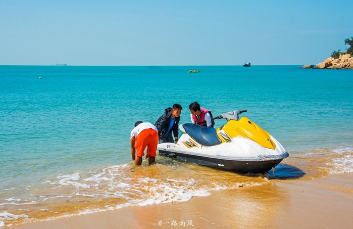 南沙湾有很多海上运动项目,有刺激的摩托艇、香蕉船、飞碟;有可以尽赏海岛美景的环岛快艇;还有讲究平衡力和协作力的双人划艇等。这些项目,我体验了一半。第一次同时体验这么多海上运动项目,一个字“爽”!
