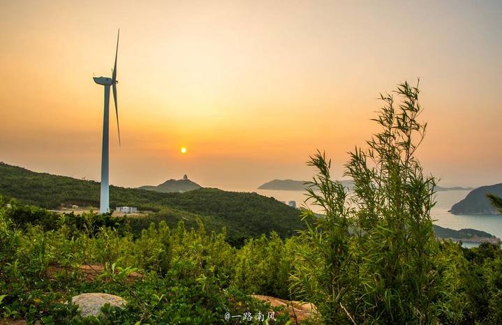 东澳岛的制高处有座装满风车的山头(暂且称之为风车山),可以多角度欣赏无边海景。每当傍晚太阳滑落地平线之时,漫天红光映照山海天,场景震撼!