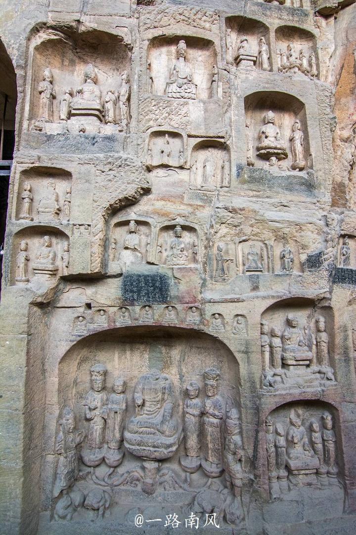 除了佛像,石窟内还有不少反映雕刻年代生活风情的浮雕,如反映1500多年前皇帝和皇后礼佛宏大场面的《帝后礼佛图》等。