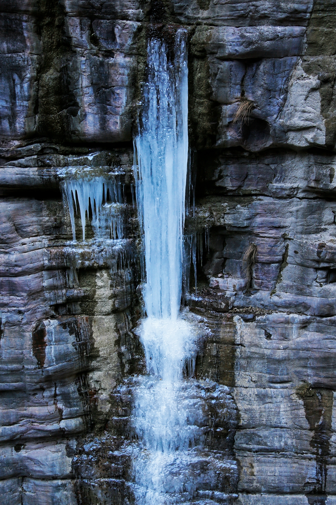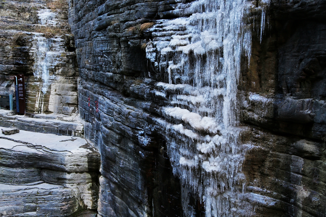 冰瀑覆盖粗糙的崖壁生出了很多细小的景观。