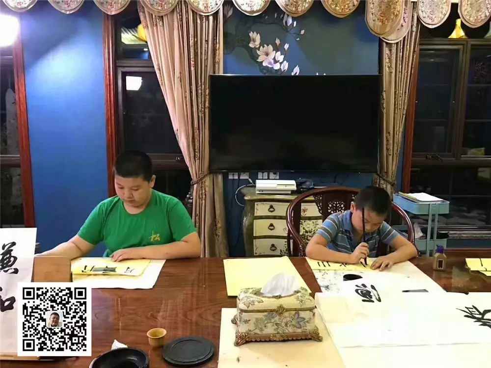 三代人一起同室挥毫