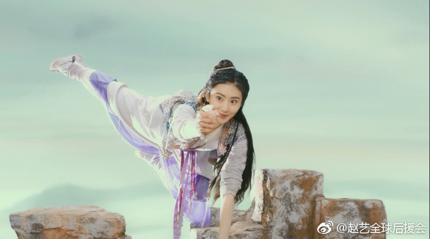 当孙悟空帮紫霞仙子完成鲤鱼跃龙门心愿后,紫霞仙子虽没有只言片语,但赵艺上下翻飞的灵动眼神,大开大合欲说还休的口型,好像在说:太神奇!好棒!当孙悟空帮紫霞仙子完成第三心愿后,紫霞仙子那种崇拜、满意、欢喜,都写在了赵艺的一言一行中。当面对美景被孙悟空问有什么心愿时,紫霞仙子说:这么好的美景,我只想和心上人去走走。那种少女怀春时的美好、甜蜜、幸福,也全然洋溢在了赵艺的笑靥中,面庞上,眼神里。
