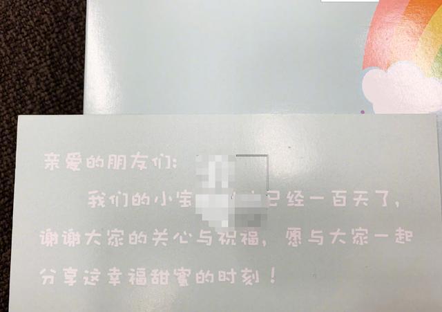 在常远给媒体的礼盒中,卡片上写道:我们的小宝贝出生已经一百天了,谢谢大家的祝福和关心,愿与大家一起分享这幸福甜蜜的时刻。