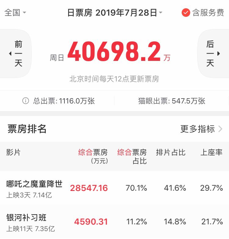 今天是星期一,是工作日,是一星期7天之中电影票房最低迷的一天。但即便是在这样的工作日,《哪吒》仍然凭借着强大的口碑,获得了超过1.8亿的票房,表现非常强势。