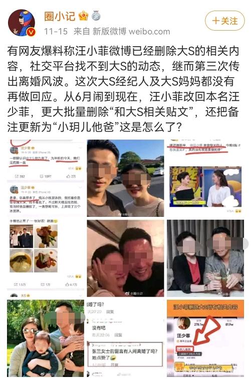 且汪小菲在社交平台上删除了与大s相关所有动态。还将备注改为“小玥儿她爸”。