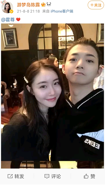 2021年8月8日21点,霍尊女友陈露在微博上@霍尊,发布了她与霍尊的合影,很亲热的合影照。网友们很高兴,认为他们要水到渠成官宣结婚了。