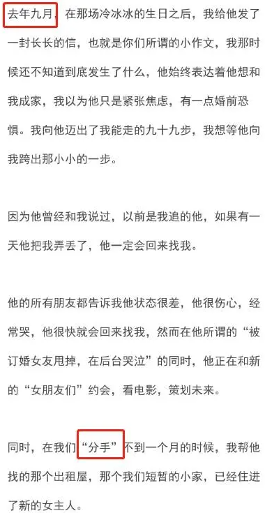 而霍尊在最后的声明里也有提到过二人分手的时间。