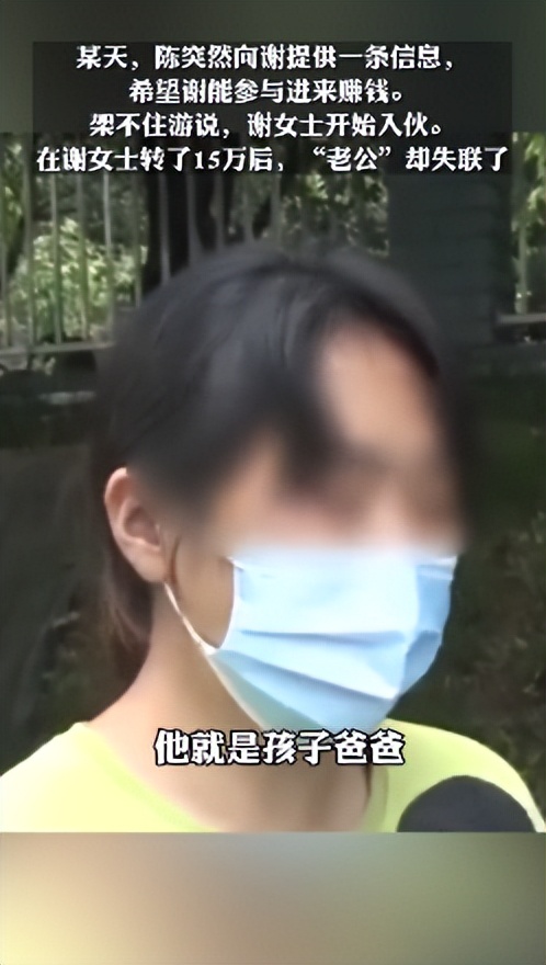 架不住游说,谢女士开始入伙,还向亲友借来了钱,合计转给对方15万后,对方便消失得无影无踪。