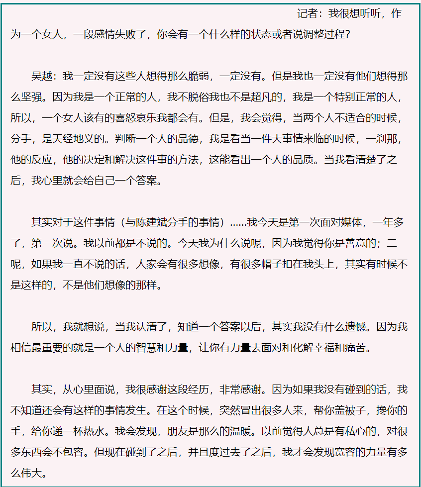 作为外人,我们捋不清到底谁对谁错,只知道吴越在这段感情中,终究还是受了伤。