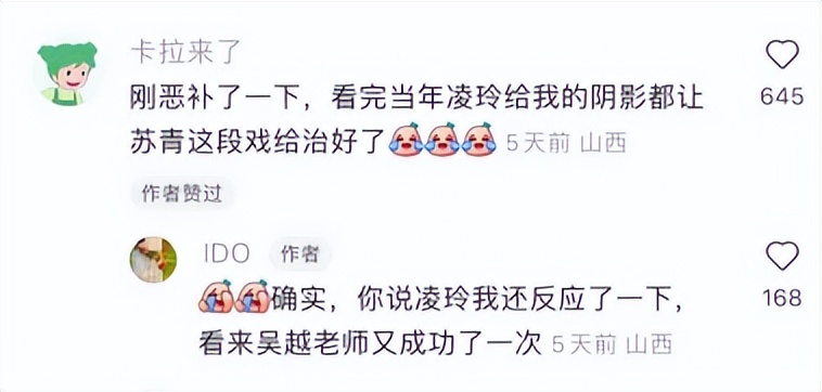 还有人说:当年凌玲的阴影都让苏青的这段戏给治好了;