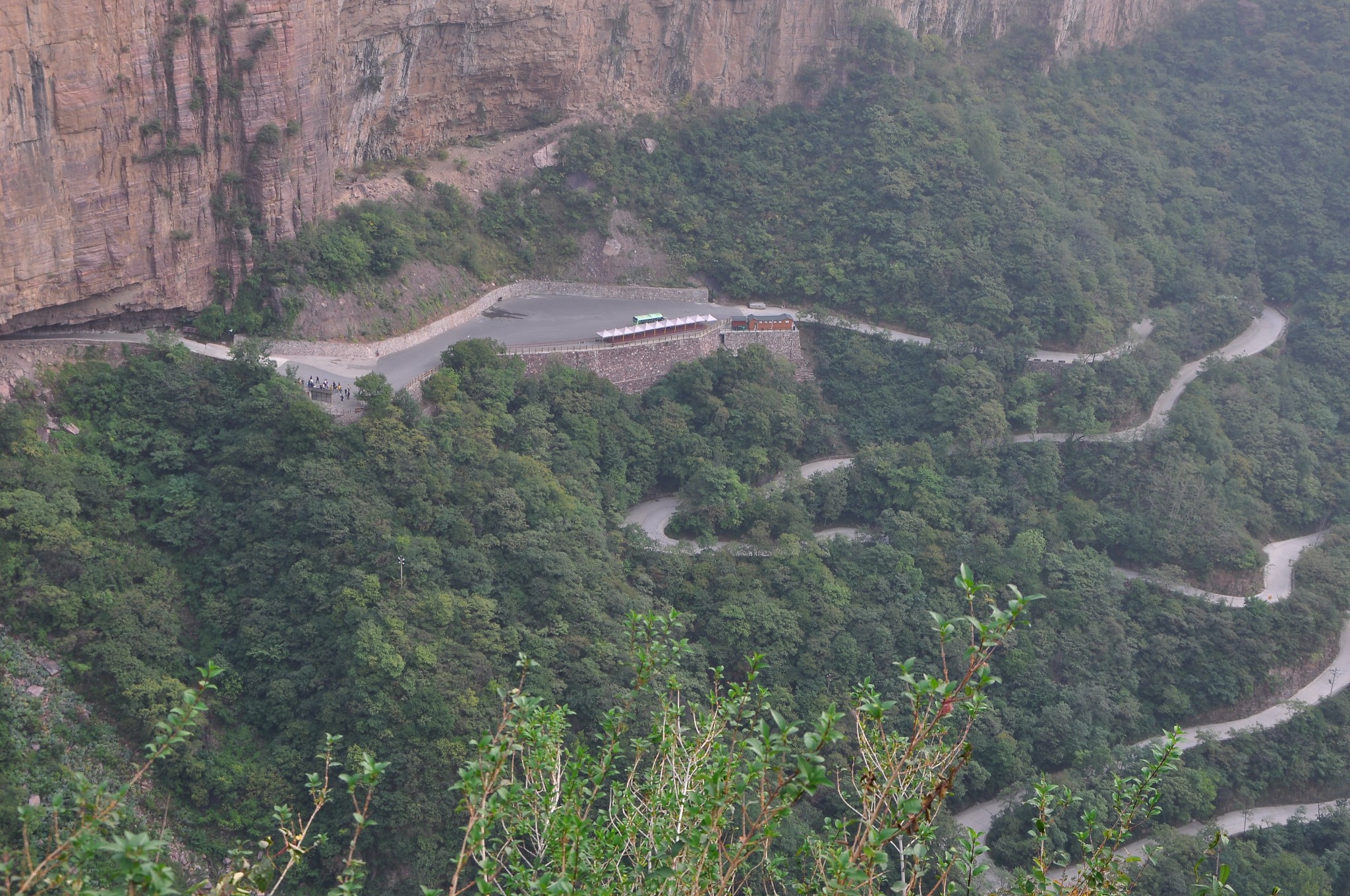 回到山顶停车场乘景区车,回程路走锡崖沟挂壁公路,但车中间不会停,只能在车上拍照。