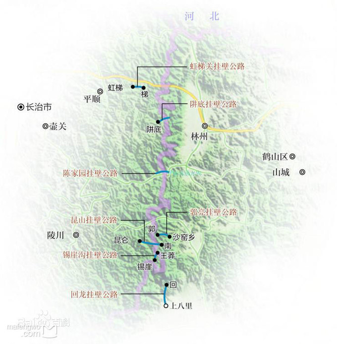 锡崖沟挂壁公路距离 河南 辉县 的 郭亮 村直线距离仅仅10几公里。