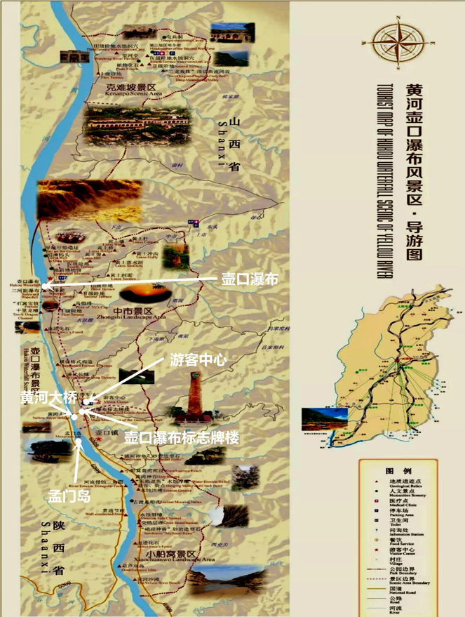 山西 吉县 壶口镇景区售票处→壶口核心景区有4里路程,景区车往返20元。