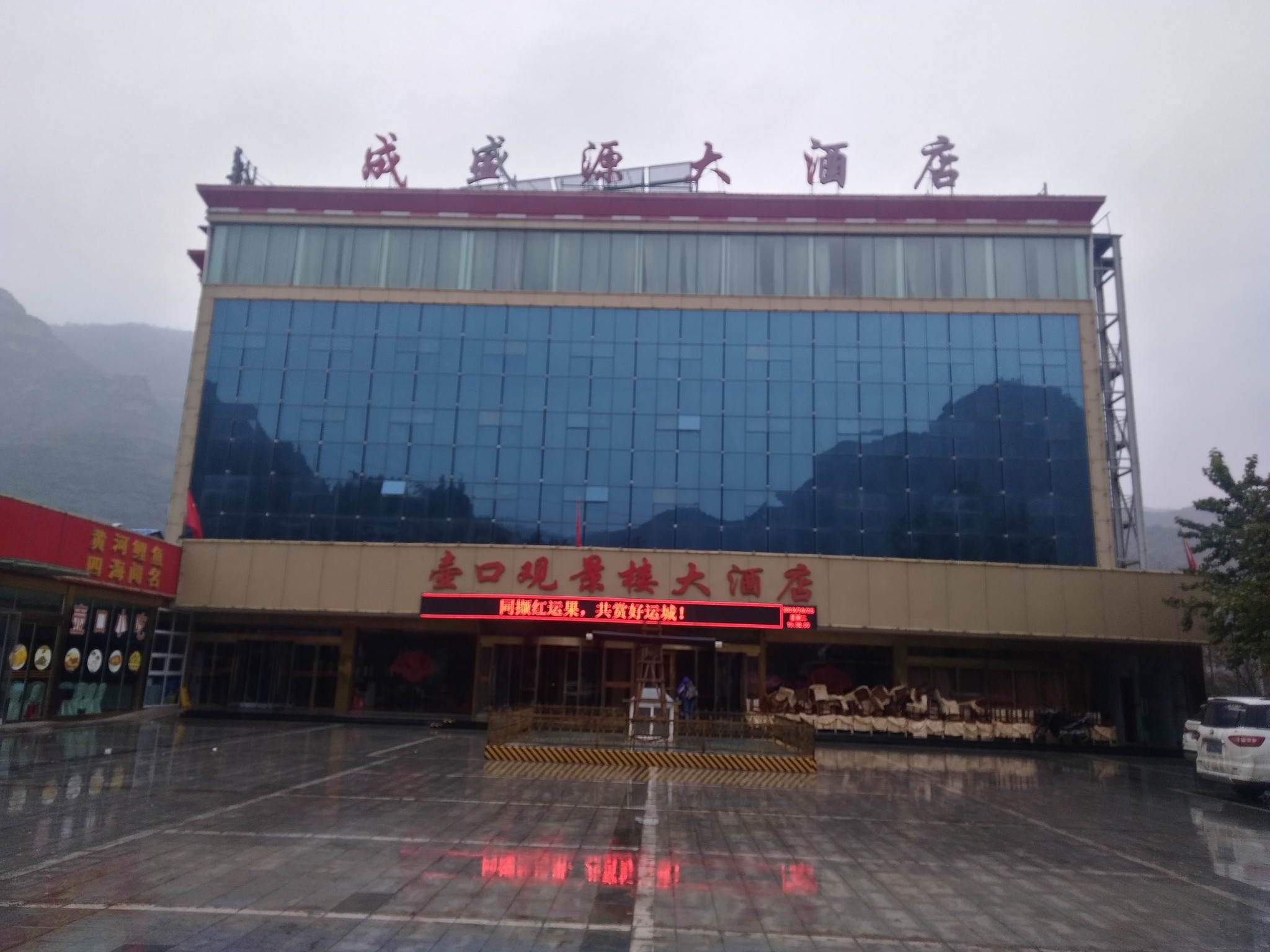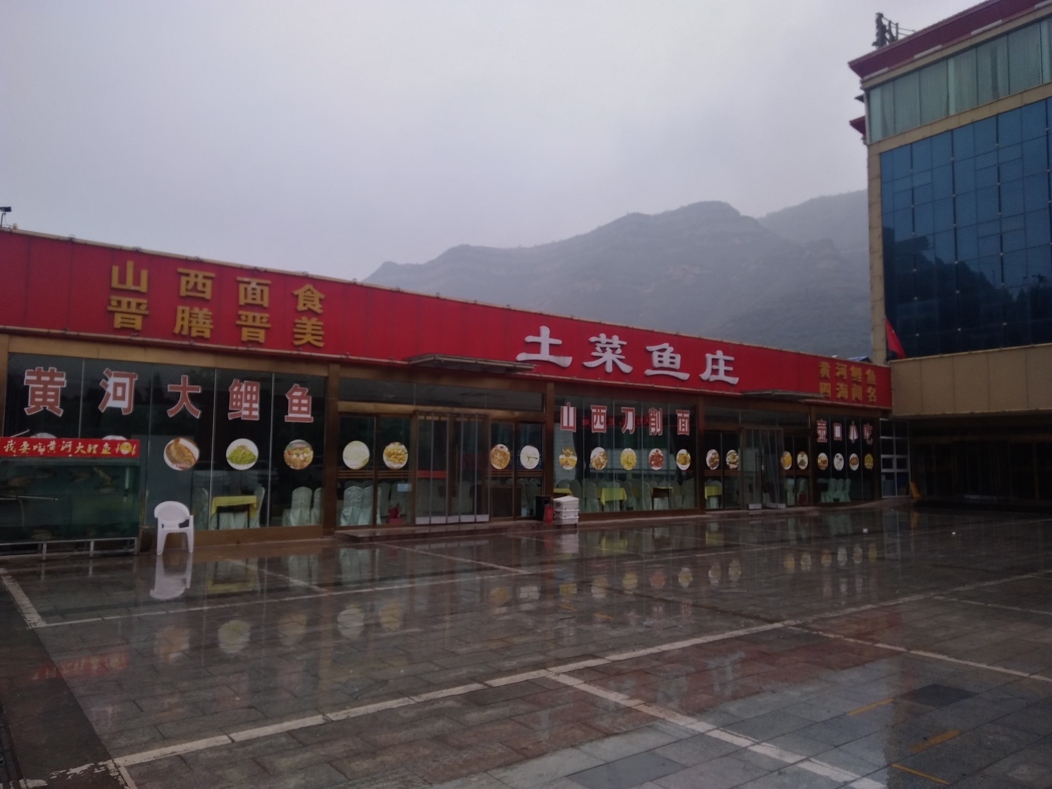 壶口瀑布 大酒店观景楼: 吉县 壶口镇景区街58号, 酒店位置好,步行至景区售票处1公里,电话0357-7986588 ,148元/标(含早)。酒店房间卫生、干净整洁,洗澡水很大。我们订的是没窗的特价房,客服为我们免费升到有窗的普标,还免费赠送了该酒店经营土菜鱼庄餐厅的一个菜,餐厅菜的量大价格实惠,味道也不错。早上的自助早餐品种也较多,是我们这次行程入住酒店超性价比的酒店,值得推荐。
