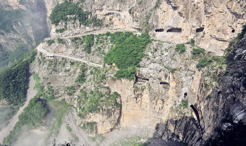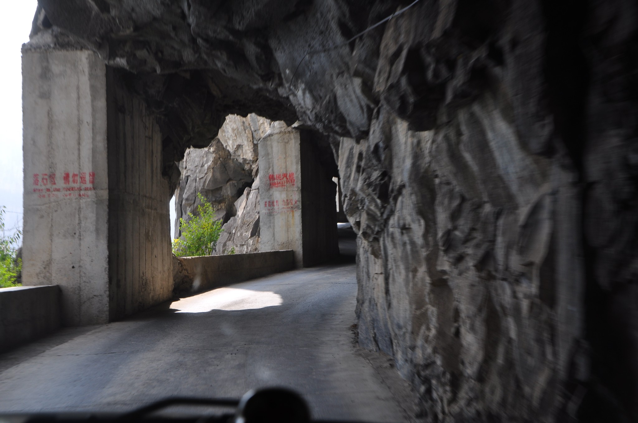 昆山 隧道全长7.5公里,从高度约500米的悬崖上当腰穿过,近10米左右开一“天窗”,透光而入,“天窗”一字排开,上罩危壁,下临深渊,让人叹为观止。