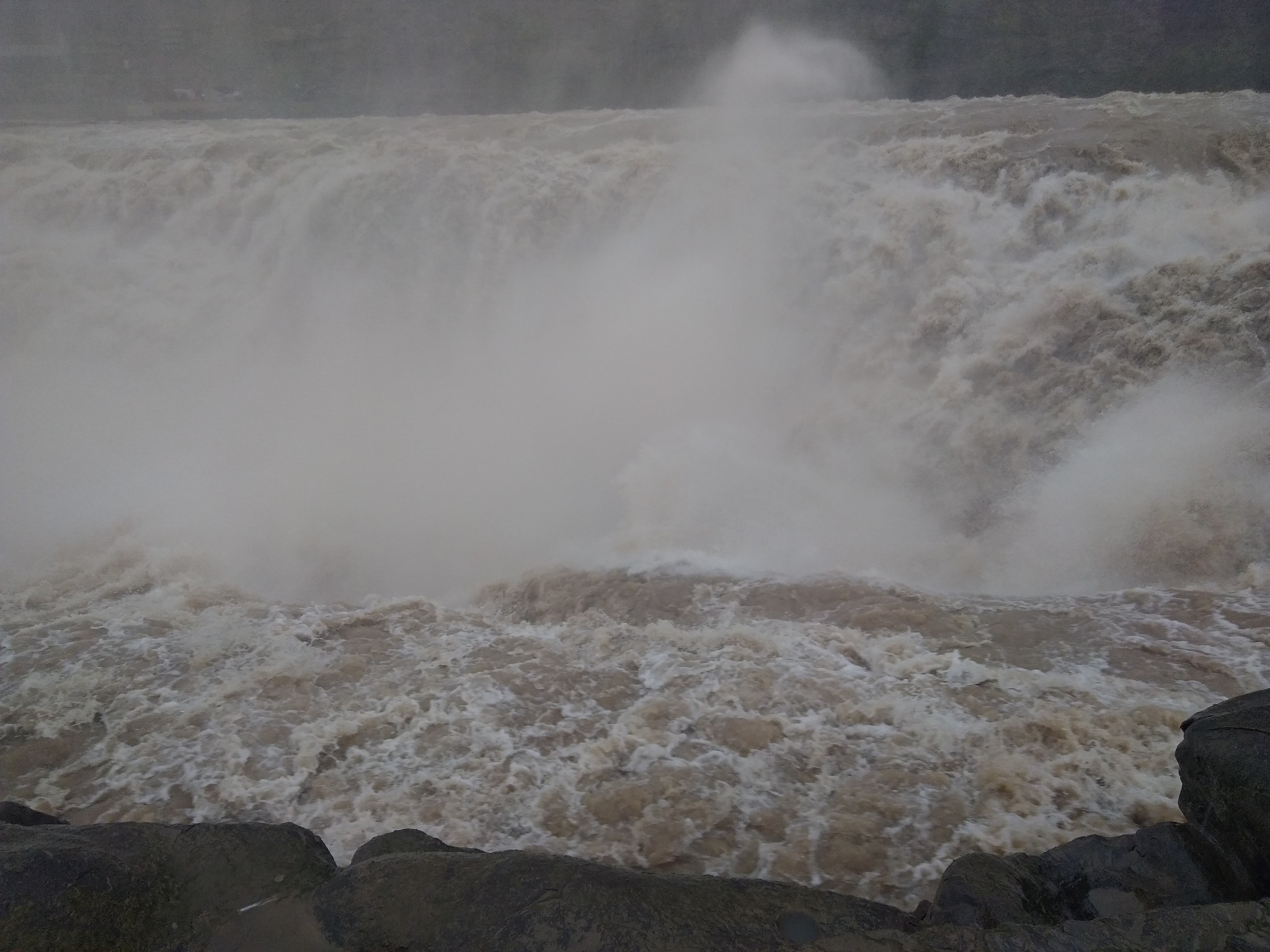 漫天而来的水流在这里汇聚成一股,飞流直下涌入峡谷,骇浪翻滚,那气势如山崩地裂,如千军万马在奔腾。