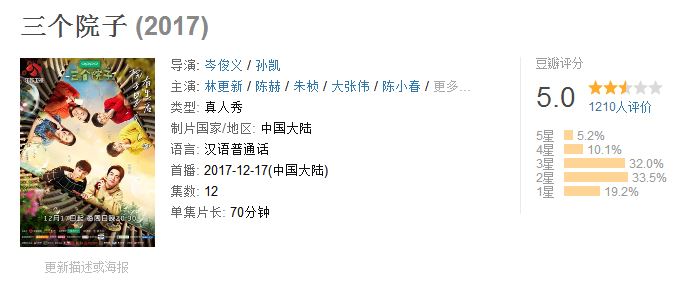 近年来,荧屏综艺层出不穷,而林更新和大张伟以及陈小春应采儿等人出镜的《三个院子》,是其中较为特殊的存在。