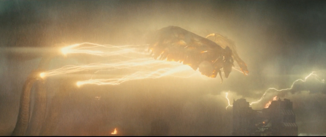 所以说,《哥斯拉2:怪兽之王》,作为一部怪兽电影,非常容易两极分化:优点,当然是视听出众!美学体系有邪典之风,比如基多拉每次出场的画面,都堪比首部曲“跳伞”一幕足以成为电影学院教科书中被引用的案例,日后可以反复琢磨。但是缺点也太明显了,愚蠢的人类啊!成为了拖后腿的角色,上演着不讨喜的戏份,摧毁了整部戏的节奏。而且说实话,3D这玩意还是挺赶客的,你需要一个亮度足够好的巨幕厅。