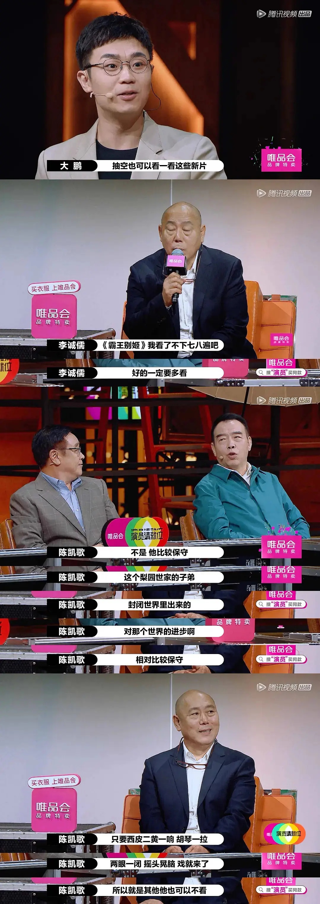 前者是量化的,比赛有标准,理性排第一,好就是好,不好就是不好。后者是模糊的,综艺需要关注,更需要正义,感性占上风,每人喜好不同。所以说,这个节目最有意思的就是,他知道观众想看什么,就带来了什么,哪怕把陈凯歌导演职业生涯最有争议的作品公开评价,哪怕明知道会引发一定的各方不满,也带来了这些,这是市场化时代,一个顶流综艺所能做到的商业处理,全民讨论,才是赢家,无人问津,才是输家。