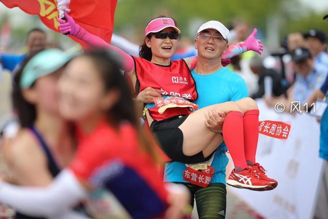 乳山的时尚,体现在赛事组织者人性化的设计中,比如穿着运动Bra的丽人和18只cosplay领跑男兔共舞,比如每个女性选手在冲过终点由帅哥男士献的鲜花中;