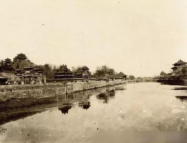 从皇城护城河看紫禁城。这张照片显示第十五和第十六世纪的中国防御系统,今天已不存在。