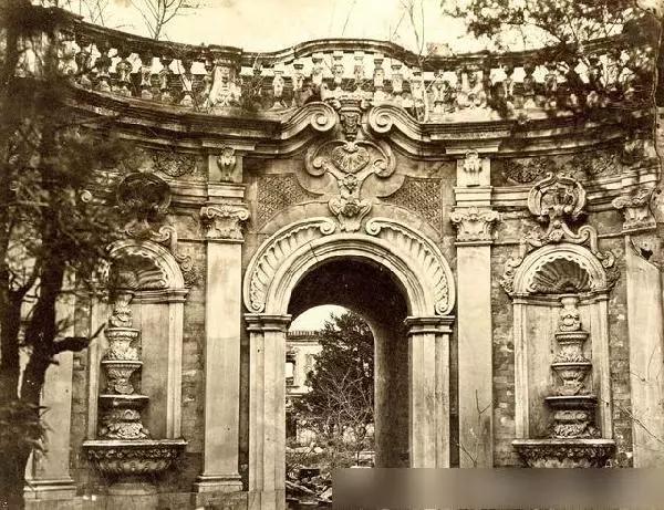 圆明园的喷泉门,或完美的花园视图 1709年初,清朝皇帝康熙开始建造这个花园静居处,这是以宏伟的宫殿,花园和欧洲喷泉为蓝本的。圆明园大部分在第二次鸦片战争中被摧毁