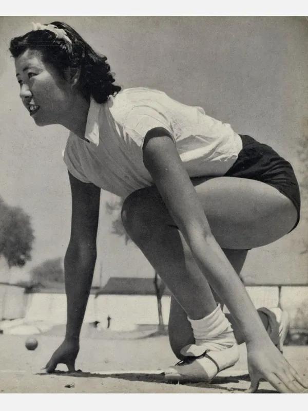 影像的很多细节也还原了当时的很多生活场景,社会百态。图为1940年,一名女学生在准备起跑。她的短袖、短裤、短袜、跑鞋的打扮在当时绝对是时尚的前沿,她的装束与中国传统女性的服饰截然不同,特别是过去“裹足”的习惯与这位中国近代女性的形象大相径庭。