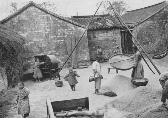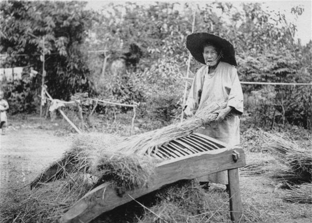 9张老照片看晚清农民有多苦?1、清朝的老百姓生活情景照。农民的打谷机,估计现在还有人家里有呢。将稻子用力敲打在打谷机上,稻谷就会掉在下面。