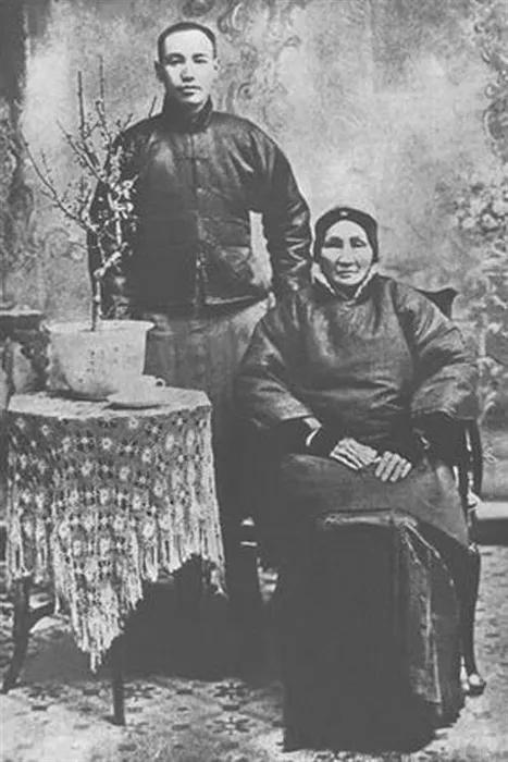 图为蒋介石和其母王采玉。