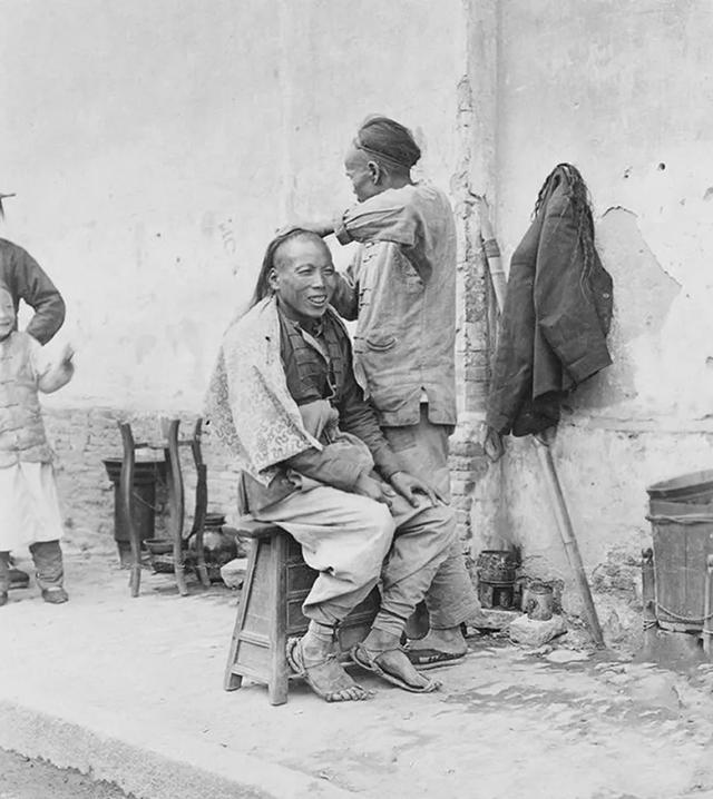 男人留这么长的头发,梳洗起来很费时间,洗头、剃头、辫发,都要找专人打理。