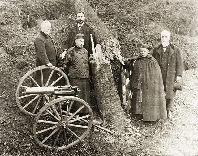 1896年,李hong章观看马ke沁ji枪的she击xiao果。