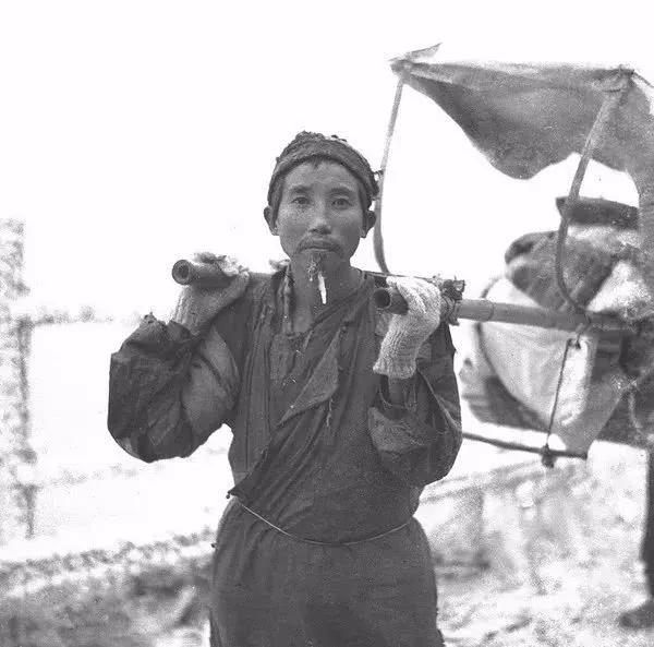 1939年7月,四川汉源县大相岭,7月山顶遍地冰雪,滑竿夫的胡须上居然挂着冰凌。孙明经/摄。