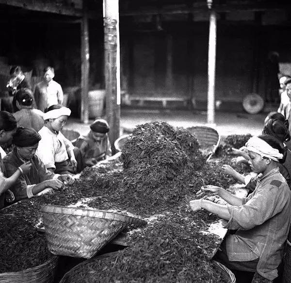 1939年6月,四川雅安第五茶场女工在检茶。孙明经/摄。