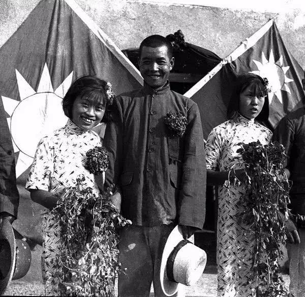 1937年7月18日,内蒙古五原县河北乡仰之村,农民中的优秀分子与北京女知识青年举行集体婚礼,由段绳武将军主婚。孙明经/摄。