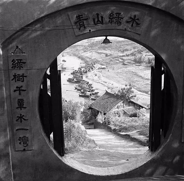 1938年4月,四川自贡,从富台山观音阁远望釜溪河上望不到头的运盐船。孙明经/摄。