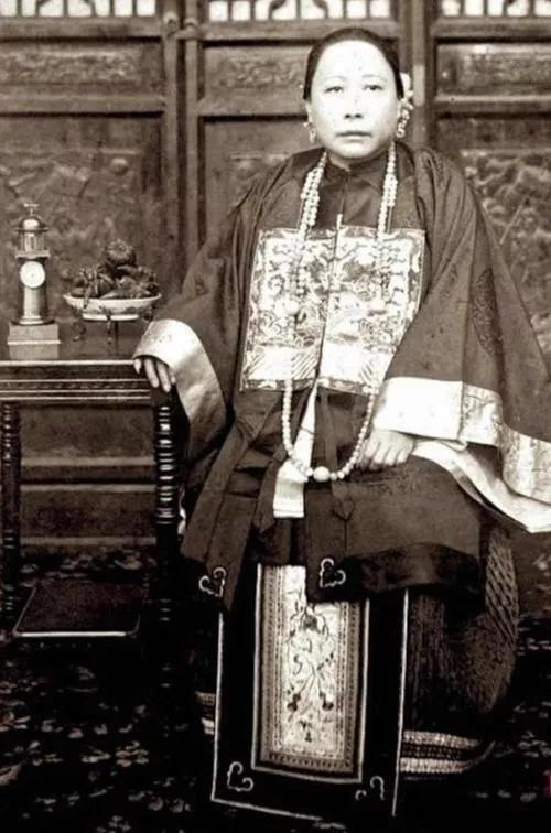 清末诰命夫人,身着命妇礼服,头戴凤冠,肩上霞帔,其气质不凡,看起来非常的冷峻霸气。