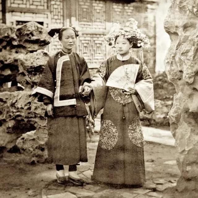 晚清时期三位富家女子,在清末民国时期的老照片中,人物影像往往都是很呆板的,这张照片三位女子对着镜头摆了个非常时髦的手势,有种穿越的感觉