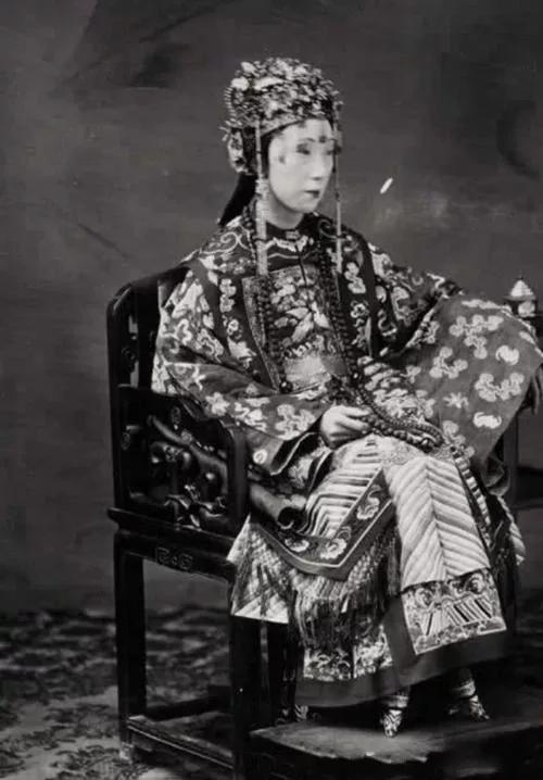 清末诰命夫人,身着命妇礼服,头戴凤冠,肩上霞帔,其气质不凡,看起来非常的冷峻霸气。