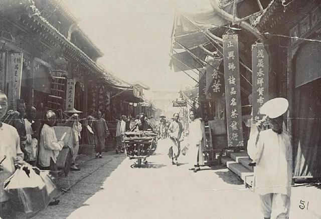 北京一处街景,有富家公子,卖苦力的车夫,还有商人,形形色色的人流让人感受到了属于那个时代的光景。