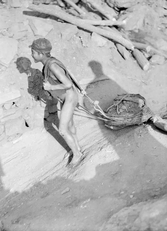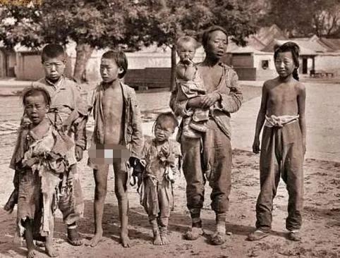 图为衣不蔽体的少年,以前人们为防饥荒,在砌墙的时候,会把多余的粮食搀泥砌在墙里。后世子孙实在没东西吃的时候,可以吃这个。这个少年拉的就是土粮。