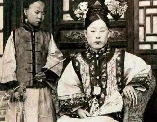 图为大户人家的夫人,旁边是他的佣人,看看这打扮真是“媚态毕露”。