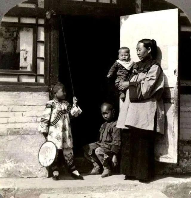 【带小孩的妇女】照片拍摄于清末民初。从照片看,他们的生活还算不错。