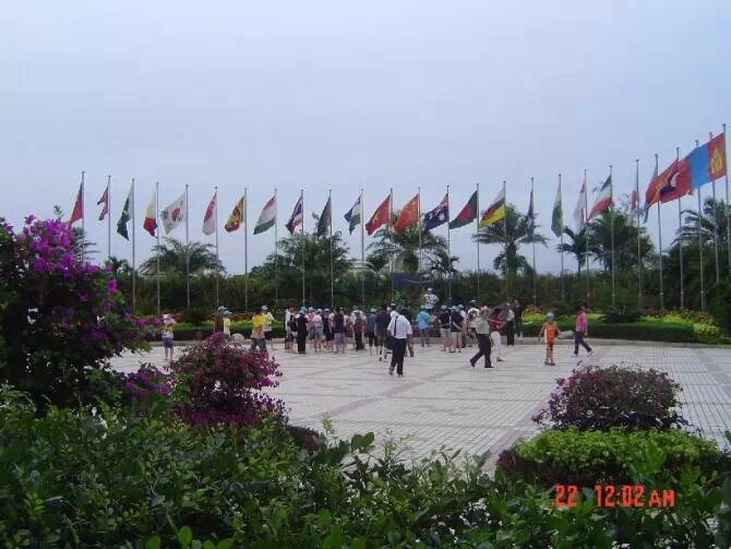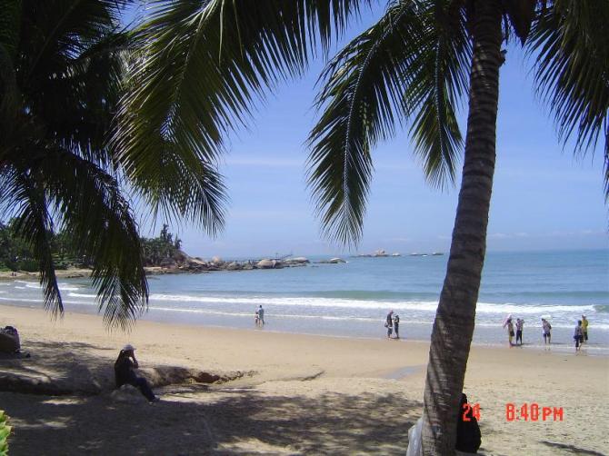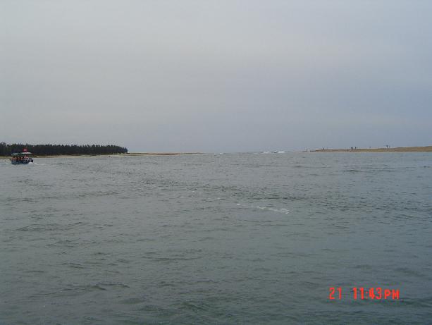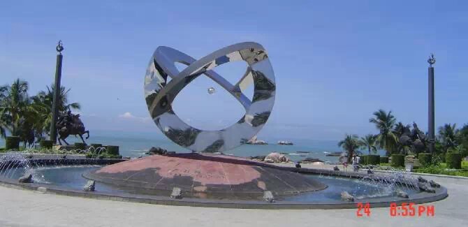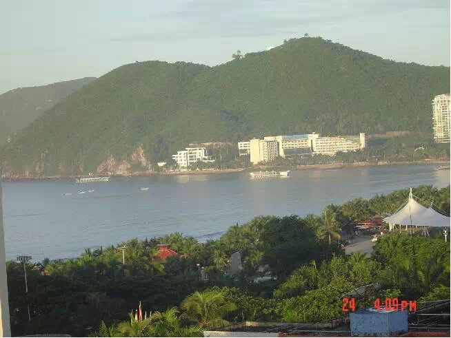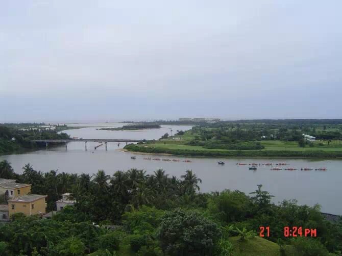 远眺世界上最分隔海与河最狭长天然海湾--- 玉带滩。这里由龙滚河、九曲江、万泉河合流后流入大海,也称三江入海口。导游介绍这里是财源聚集地,不知道财源滚滚达三江的典故是否出自这里。