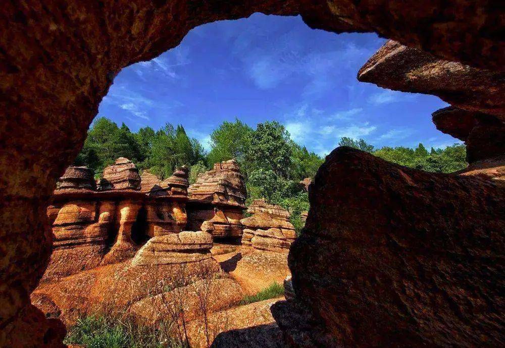 它是全球唯一在寒武纪形成的红色碳酸盐岩石林景区。五亿年前的这里,还曾是一片浩瀚的海洋。