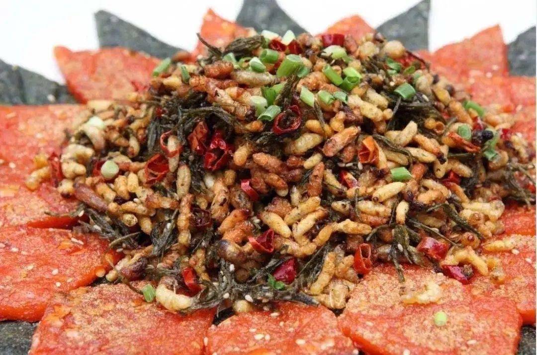 百虫宴上的所有菜色均以虫子为主,桃花虫、蜂蛹、蝉猴、竹虫、水蜈蚣、蚯山子、瓢瓜虫等等,都是苗家特产菜。