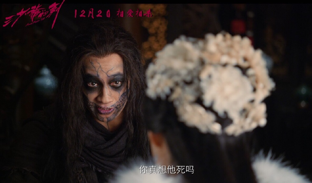 何润东饰演的燕十三,一出场便以嚣张的姿态的示人。开场轻易的手刃对手,露面之刻一脸凶相,纹着骷髅的造型,惊煞众人。用句俗话来说,一看就不是好人,整天顶着一副骷髅脸,“坏人”二字都写在脸上了。